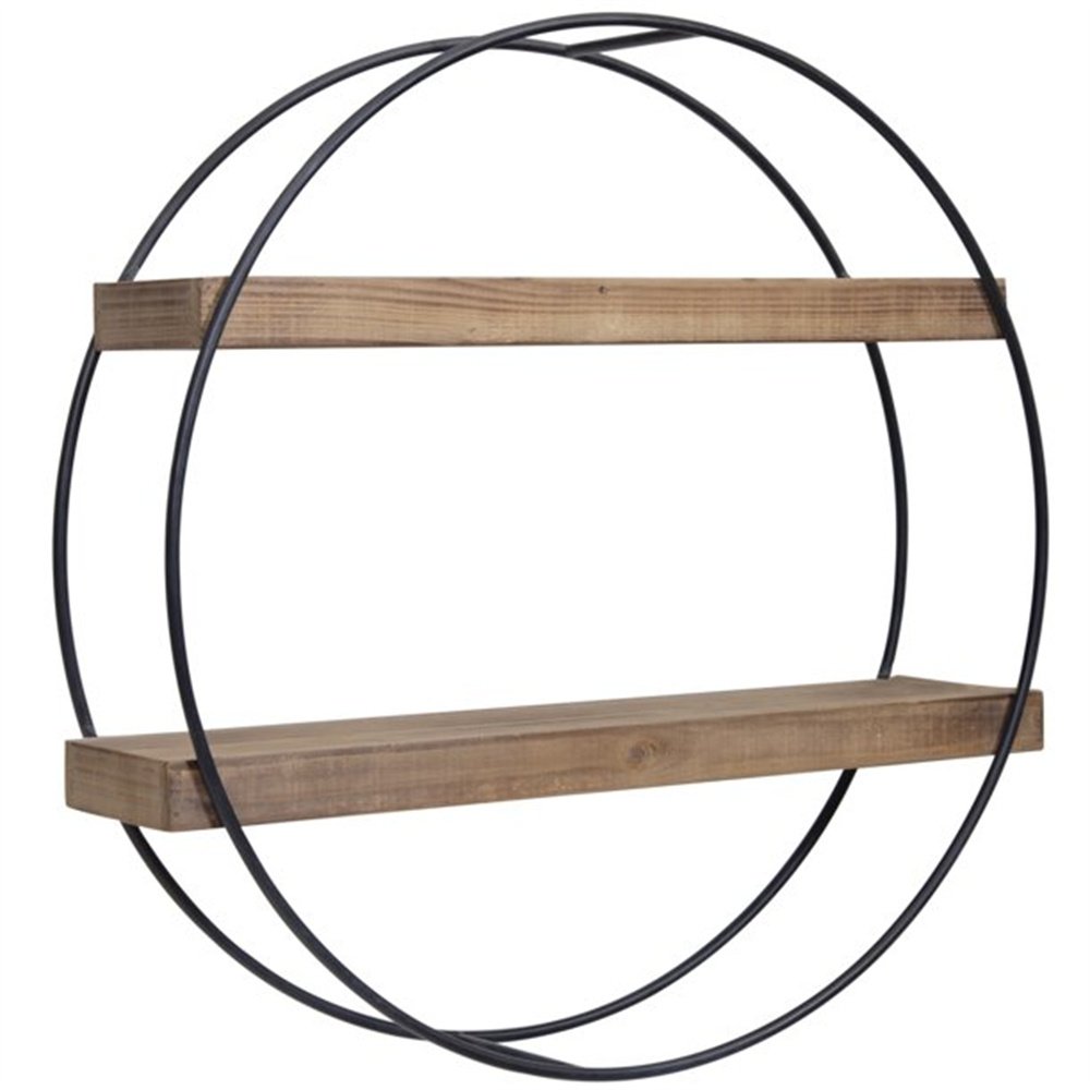 Home > Industrial Round Wall Shelf; Black Metal and Wood; 5.70 x 24.00 x 24.00 Inches